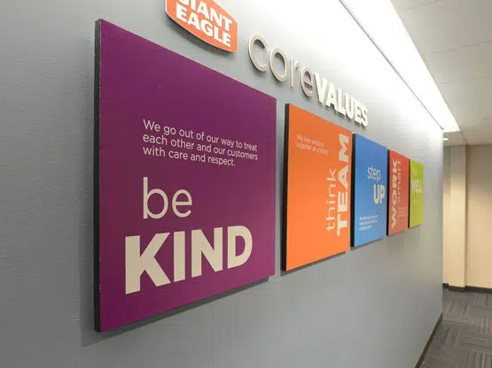 Premium acrylic and metal signs that add depth and impact.